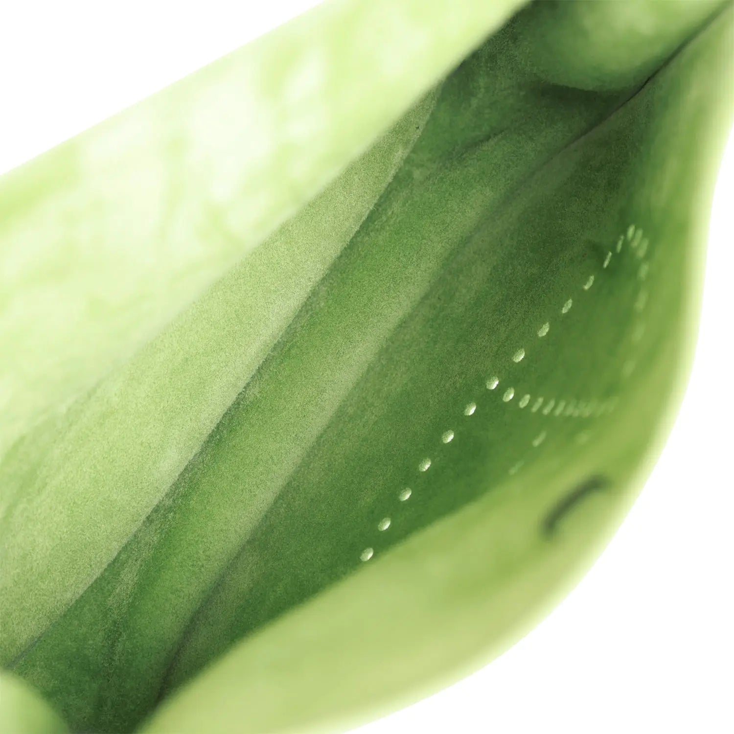 このEvelyneは、ゴールドの金具が付いたVert Criquetクレマンスレザーで作られており、同系色のステッチ、プルタブトップクロージャー、取り外し可能なVert Criquetキャンバスとレザーのショルダー/クロスボディストラップが付いています。