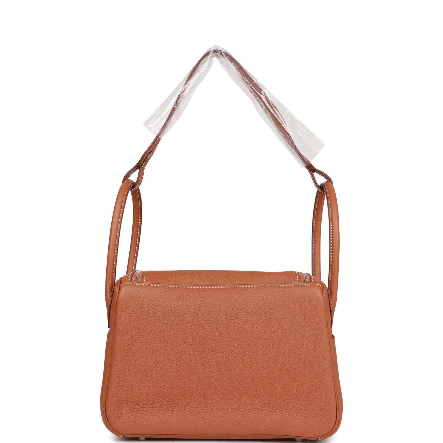 このリンディは、ゴールド クレマンスにパラジウム ハードウェアが付いており、パラジウム ステッチ、ダブル ジッパー プル、中央のエルメス ツイスト ロック クロージャー、5 つのパラジウム フィート、取り外し可能なショルダー ストラップでつながれた 2 つのトップ ハンドルが特徴です。
