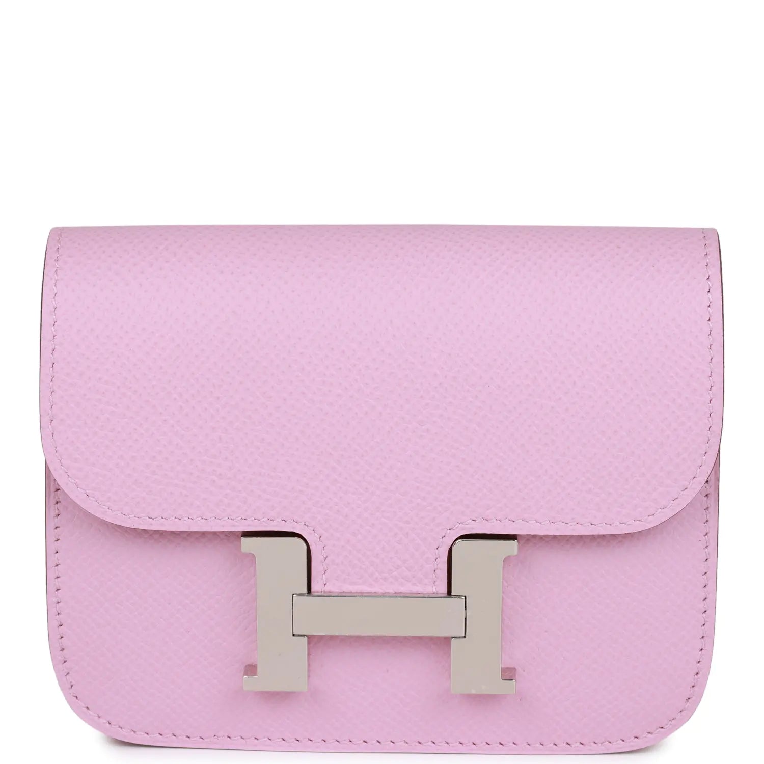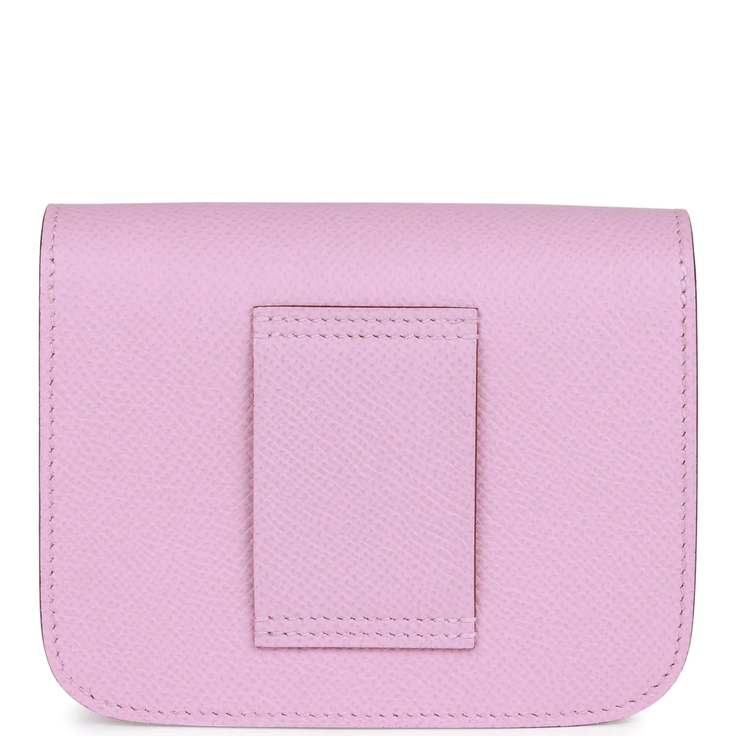 このコンスタンス スリムウォレットは、モーヴシルベストルのエプソンレザーにパラジウム金具をあしらったデザインで、同系色のステッチが施されています。背面にはベルトループ、フロントフラップ、取り外し可能なコインポーチを備えています。