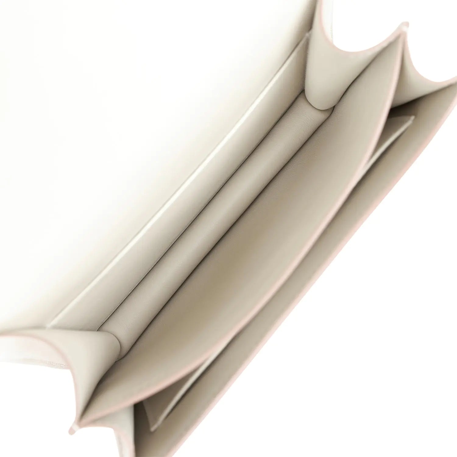 内側はグリ・ペルルのラムスキンで裏打ちされ、前面にオープンポケット、中央に仕切り、背面にスリットポケットが付いています。