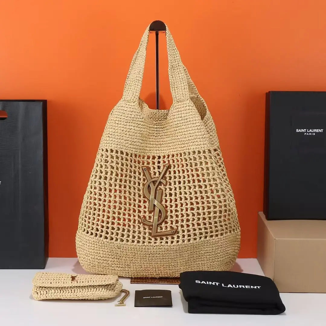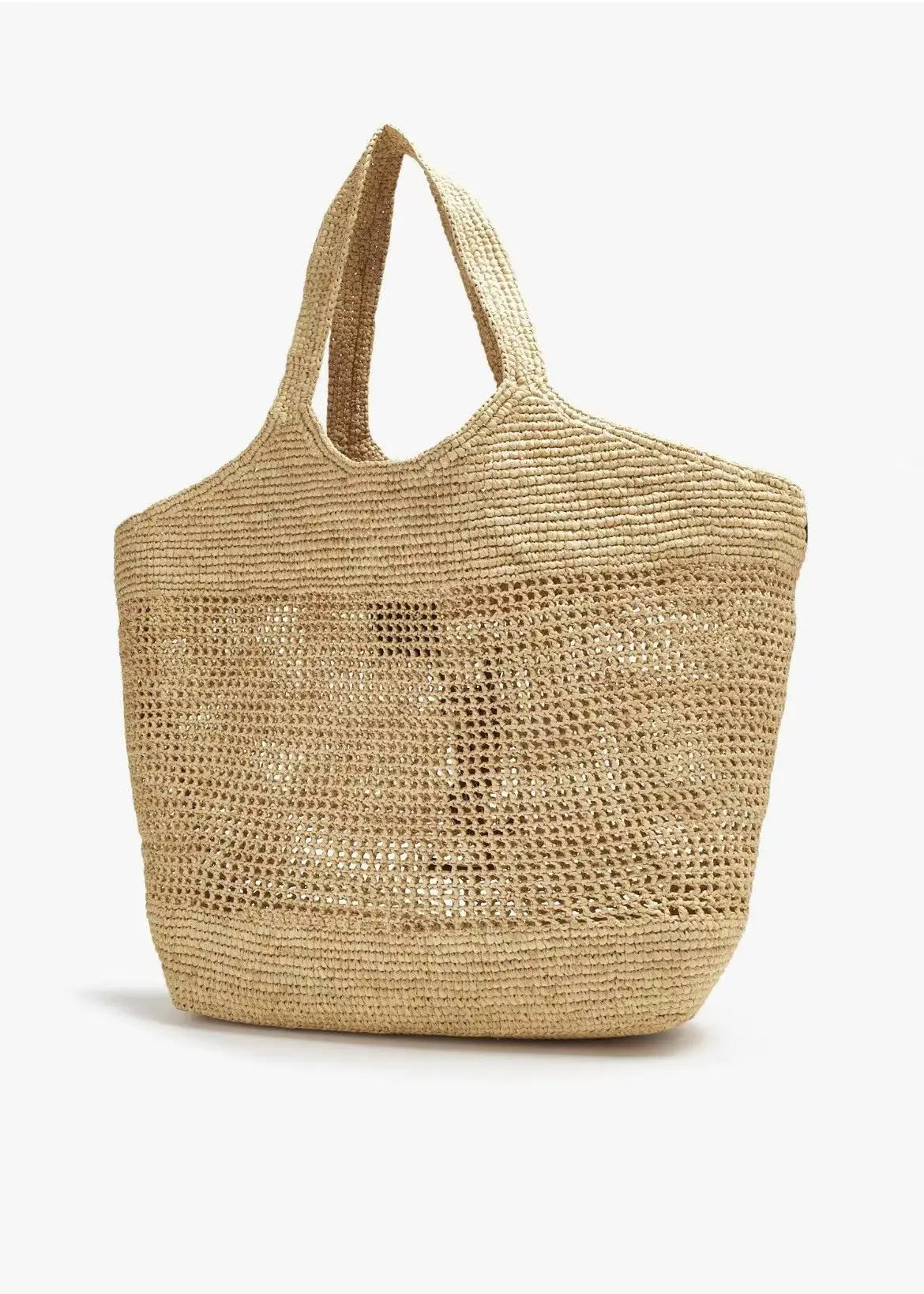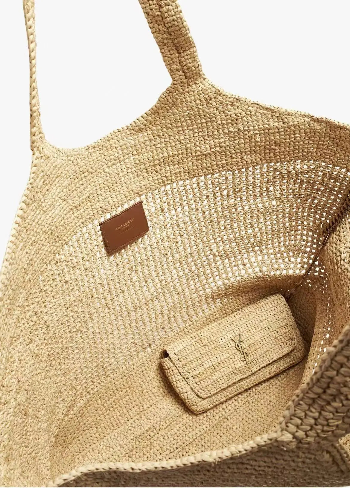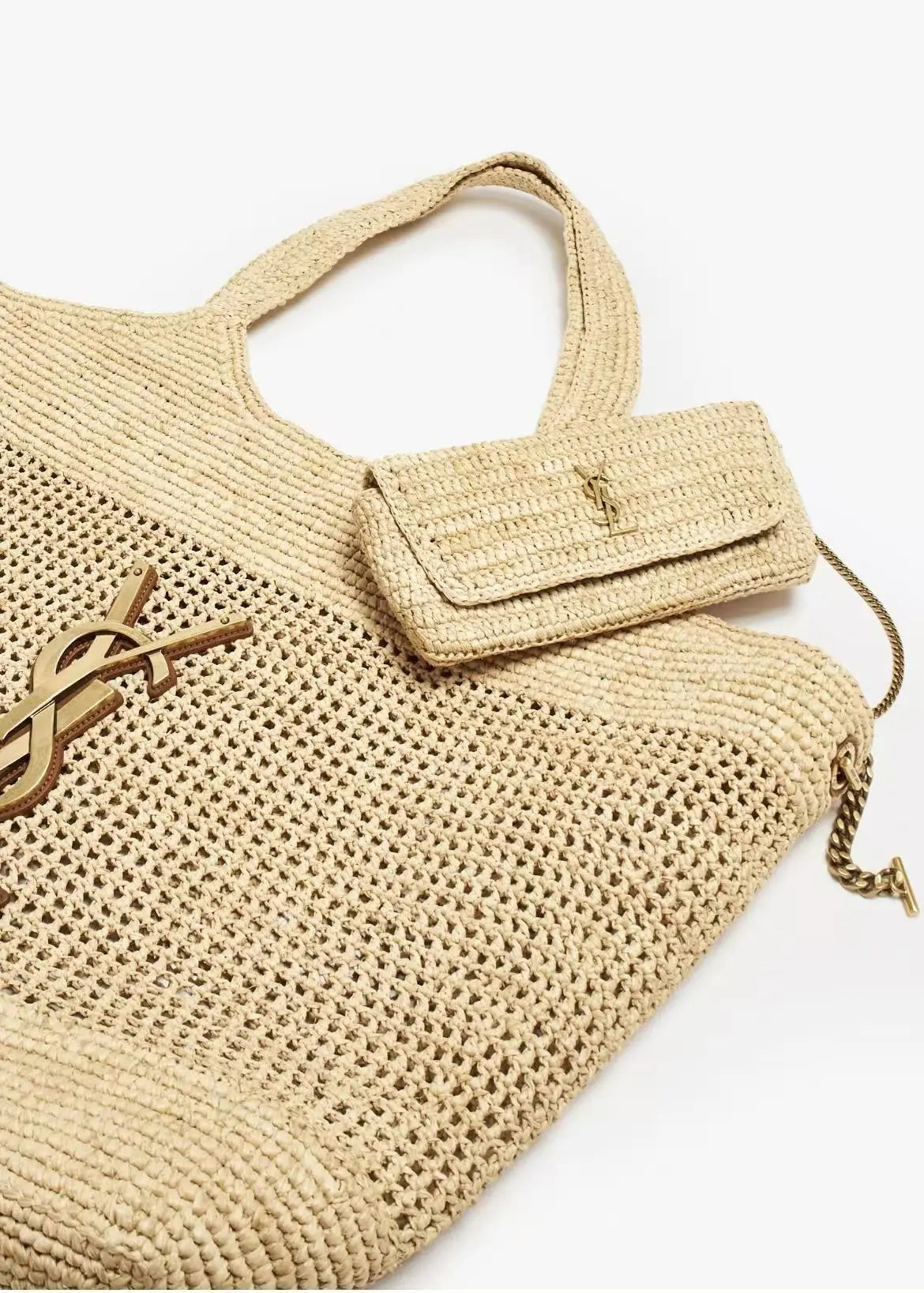 ハンドエンブロイダリー(手刺繍)で仕上げられたナチュラルラフィア製のマキシショッピングバッグ。この技法には最高の知識と専門的な職人技が求められます。大胆なスカルプチャード・カサンドレ(彫刻風ロゴ)で装飾され、内側のチェーンでサイドの形状を調節可能。ロングチェーンで取り外し可能なラフィア製サングラスケース付き。ブロンズトーンのハードウェアとヴェジェタブルタンレザー(植物タンレザー)を使用したディテール。取り外し可能なチェーン・トグルクロージャー。サイズ:37-55×43×5cm、ハンドルドロップ:22cm。素材:ラフィア、カーフスキンレザー、真鍮。スタイルID:772191GAAEK2063。マダガスカル産。