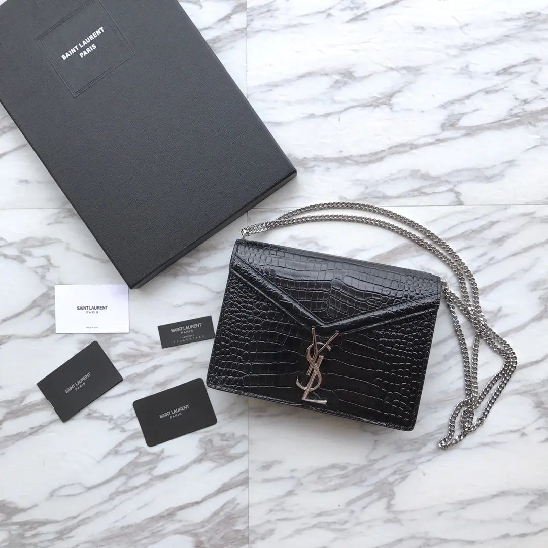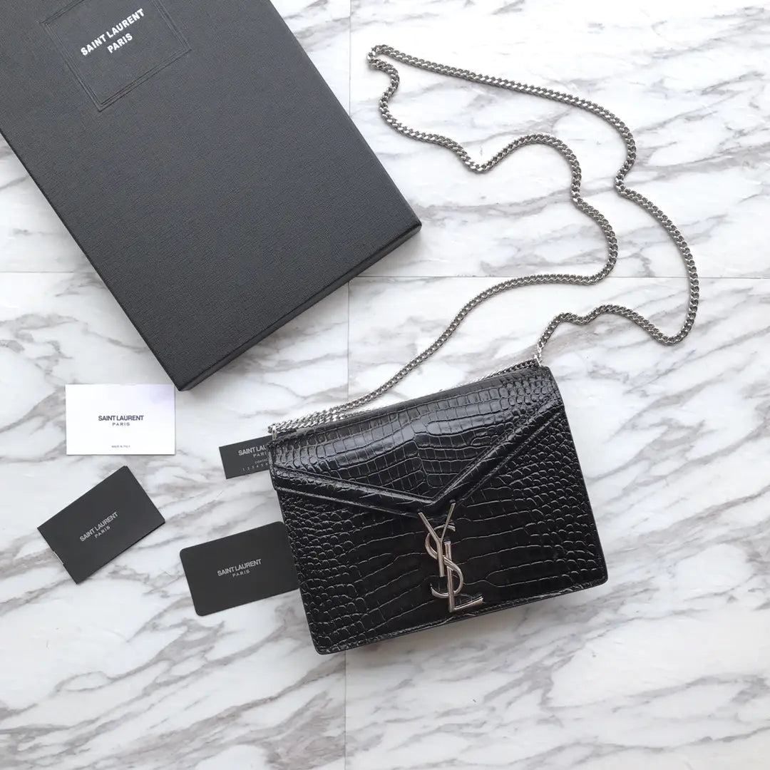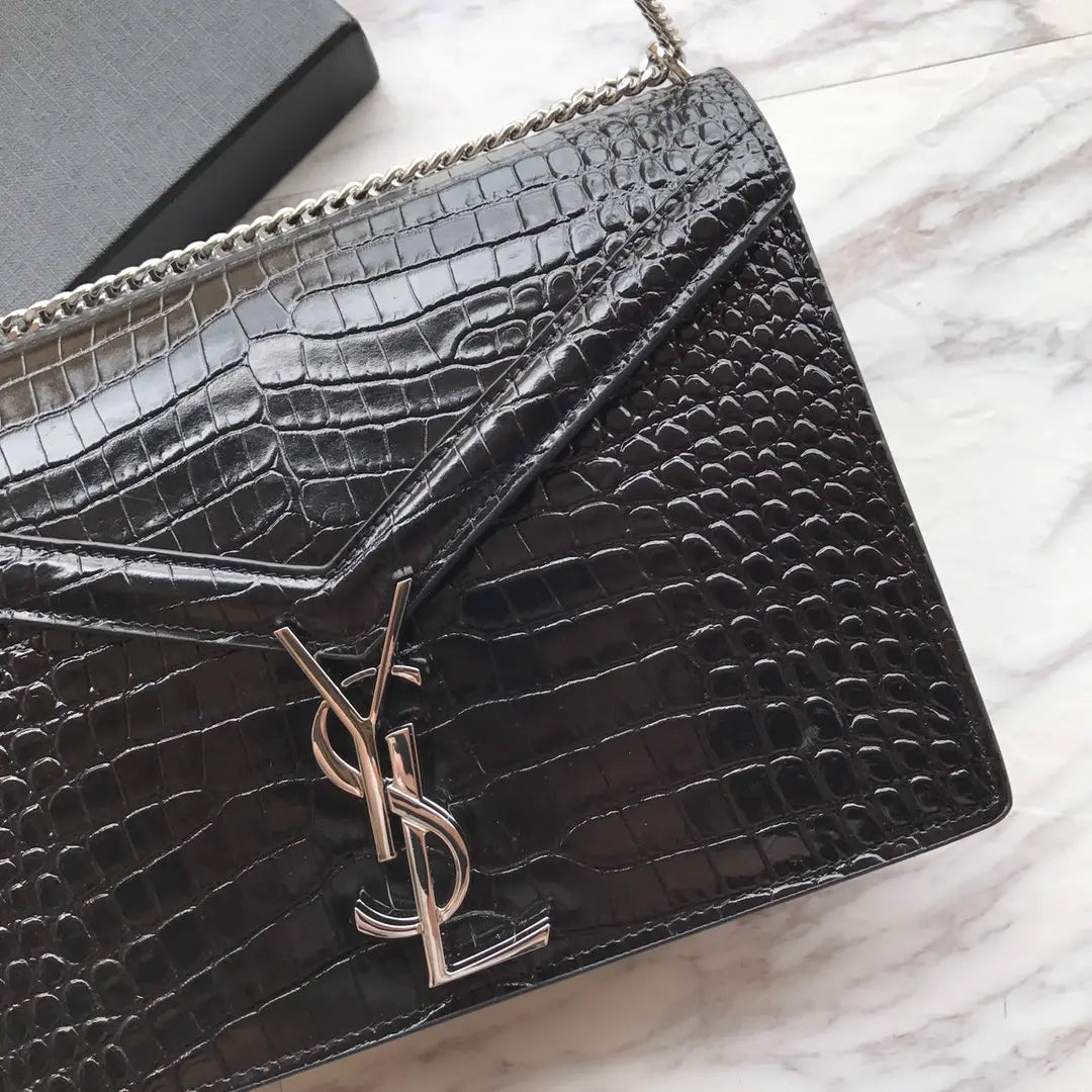 カサンドラ モノグラム クラスプバッグ(クロコダイルエンボス加工シャイニーレザー製)