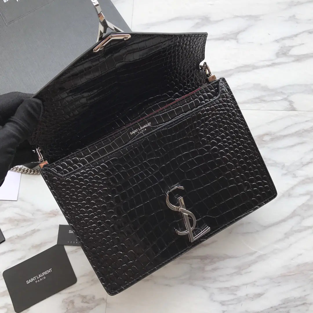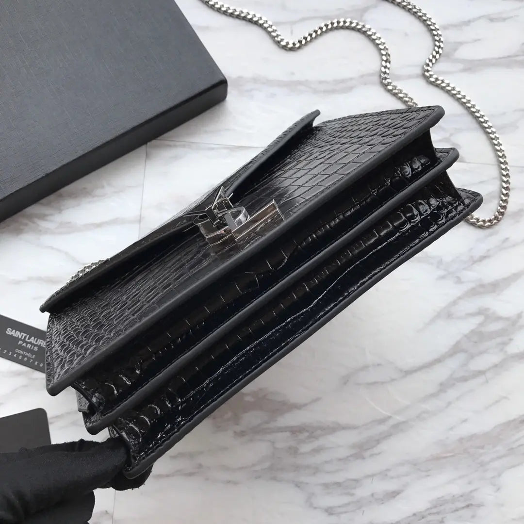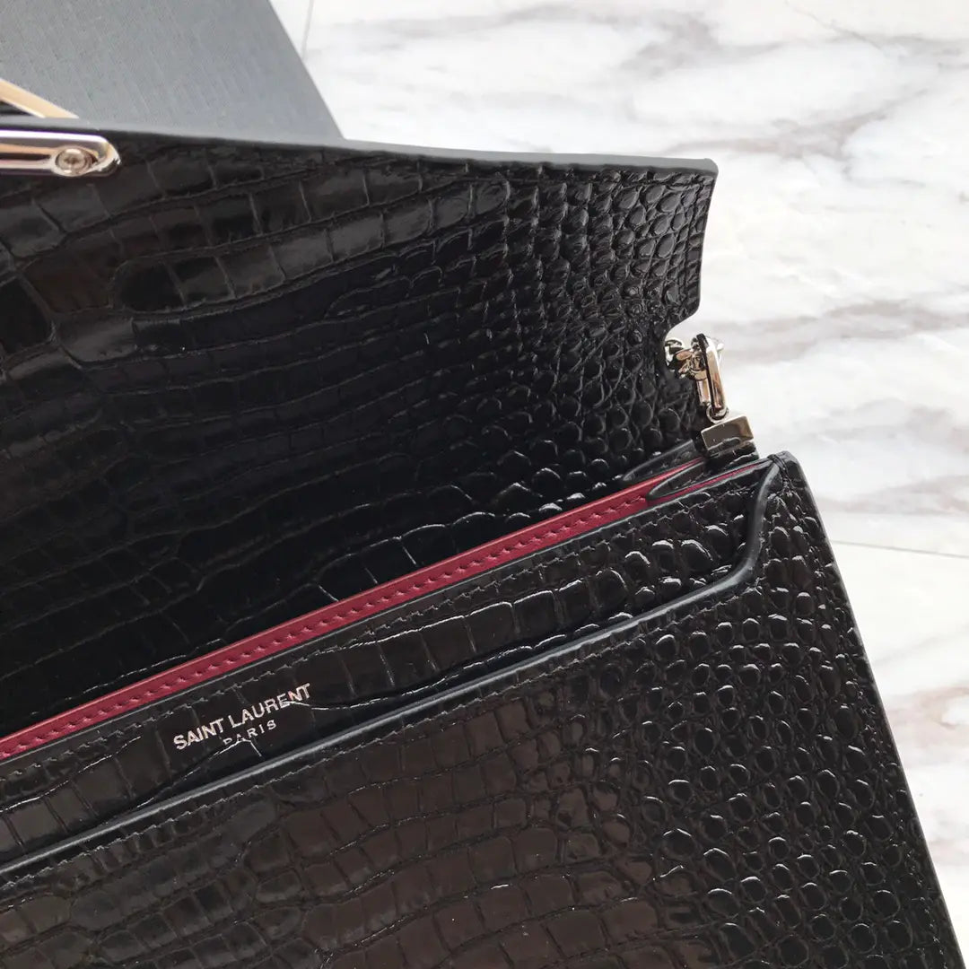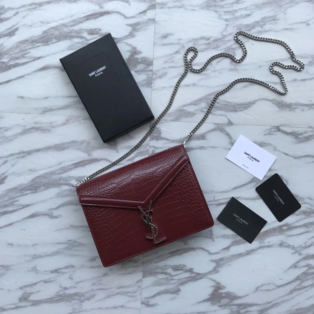 カサンドラ モノグラム クラスプバッグ(クロコダイルエンボス加工シャイニーレザー製)