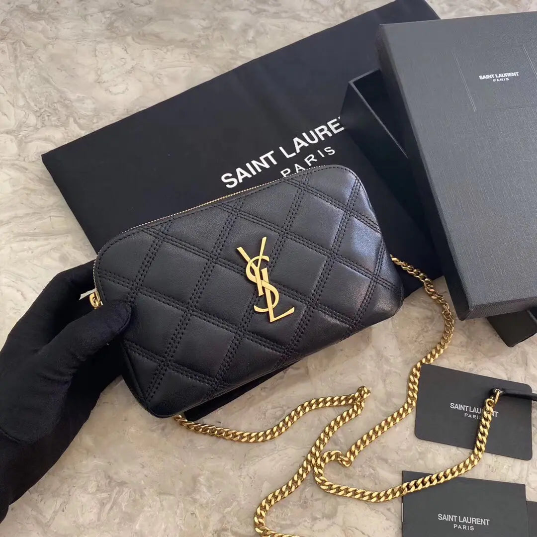 キルティングマットレザーのベッキー ダブルジップポーチ