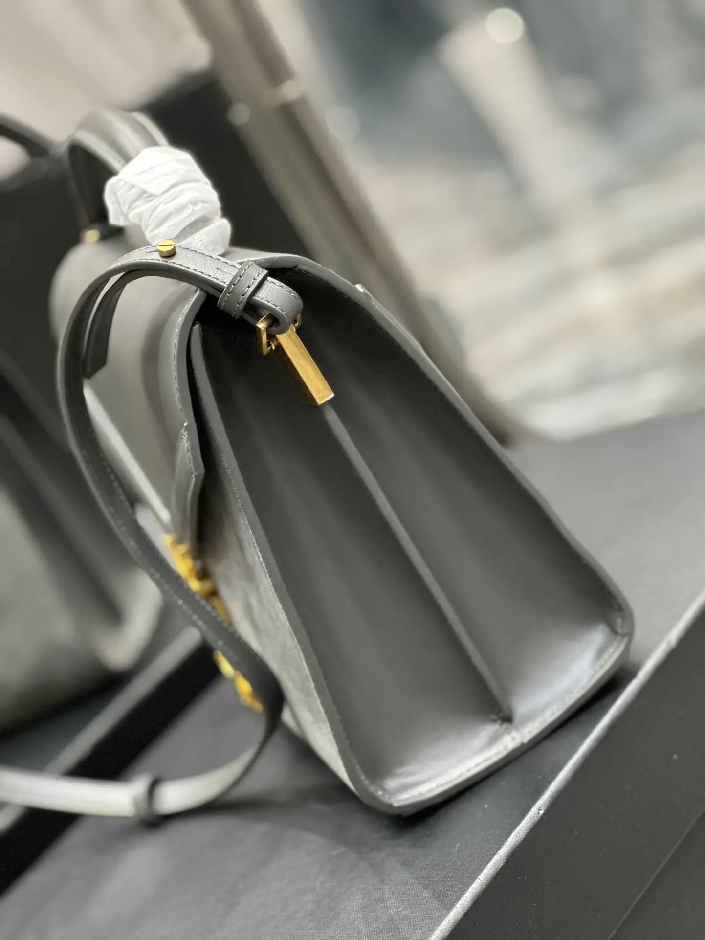 カサンドラ ミディアム トップハンドルバッグ グレイン・ド・プードル エンボスレザー