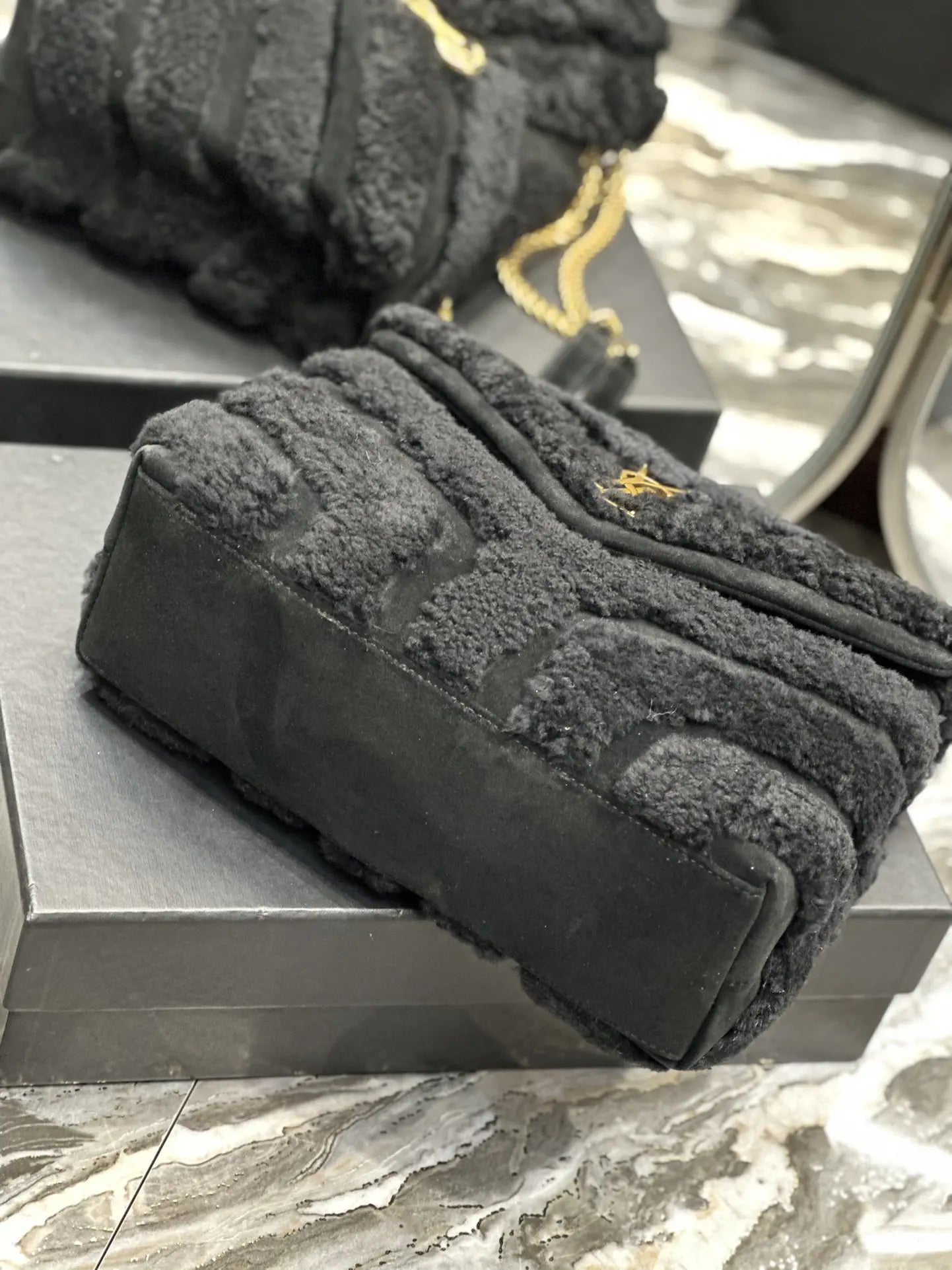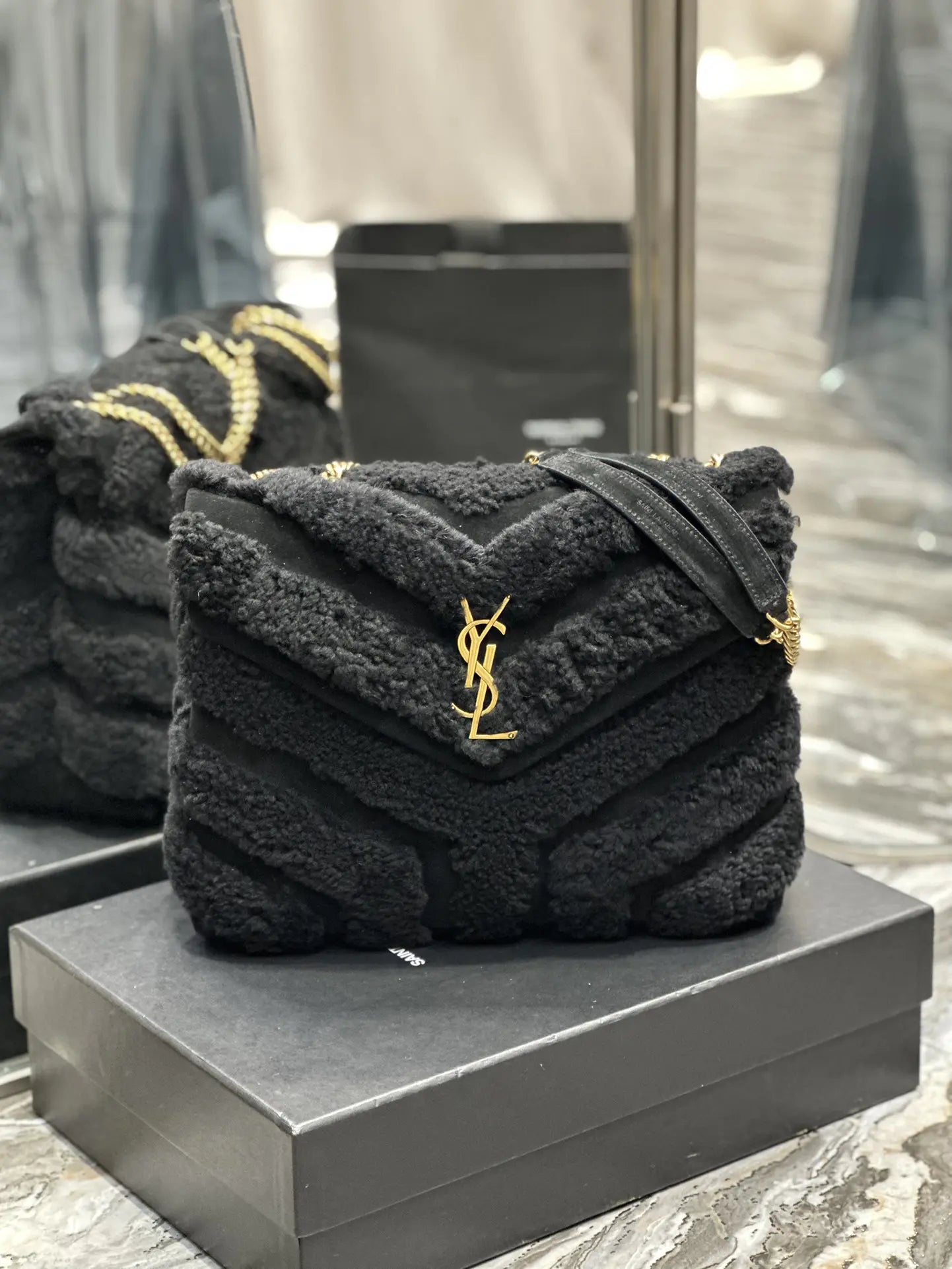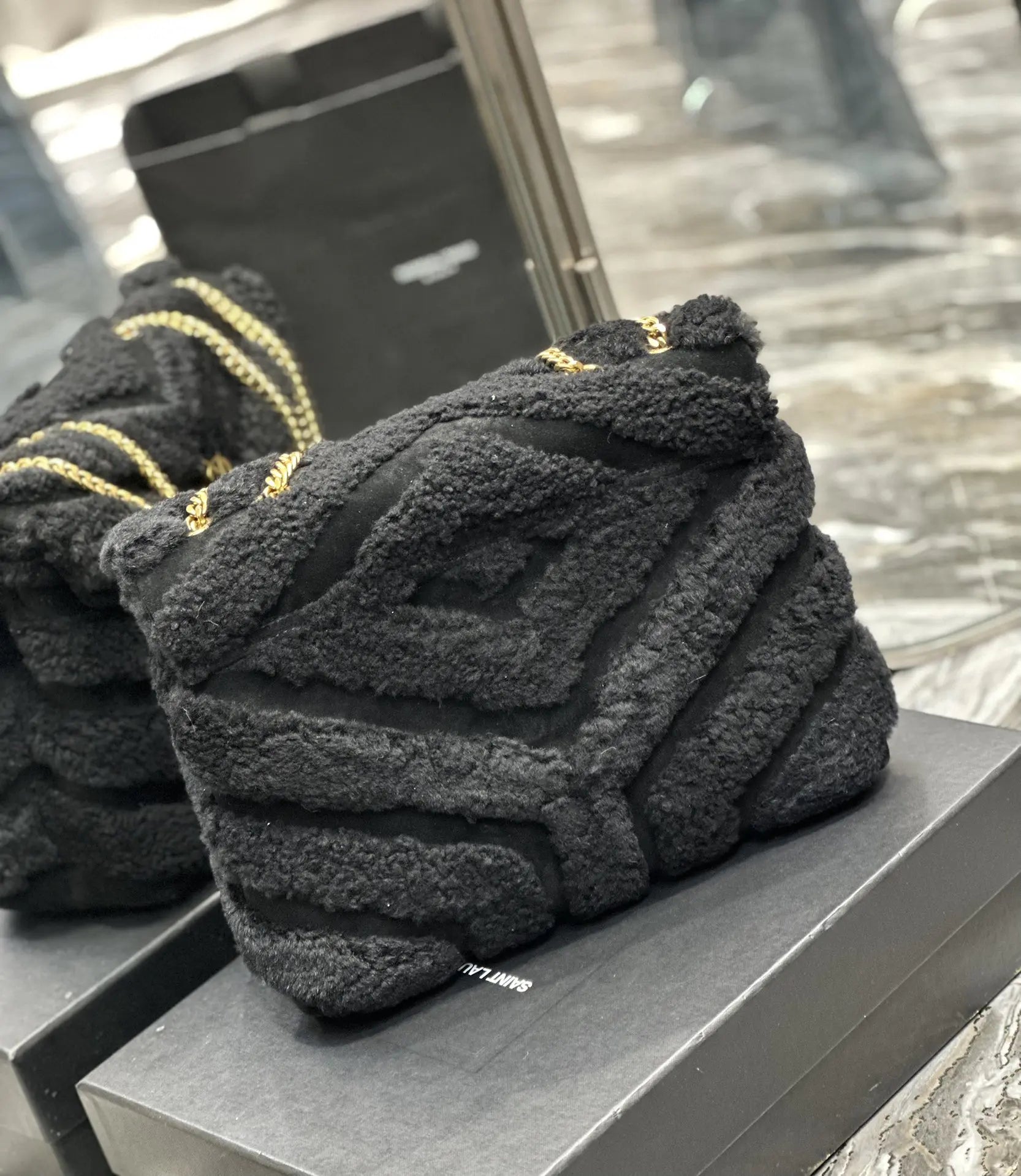 キルティングYレザー、サテン、スパンコールのルル スモールチェーンバッグ