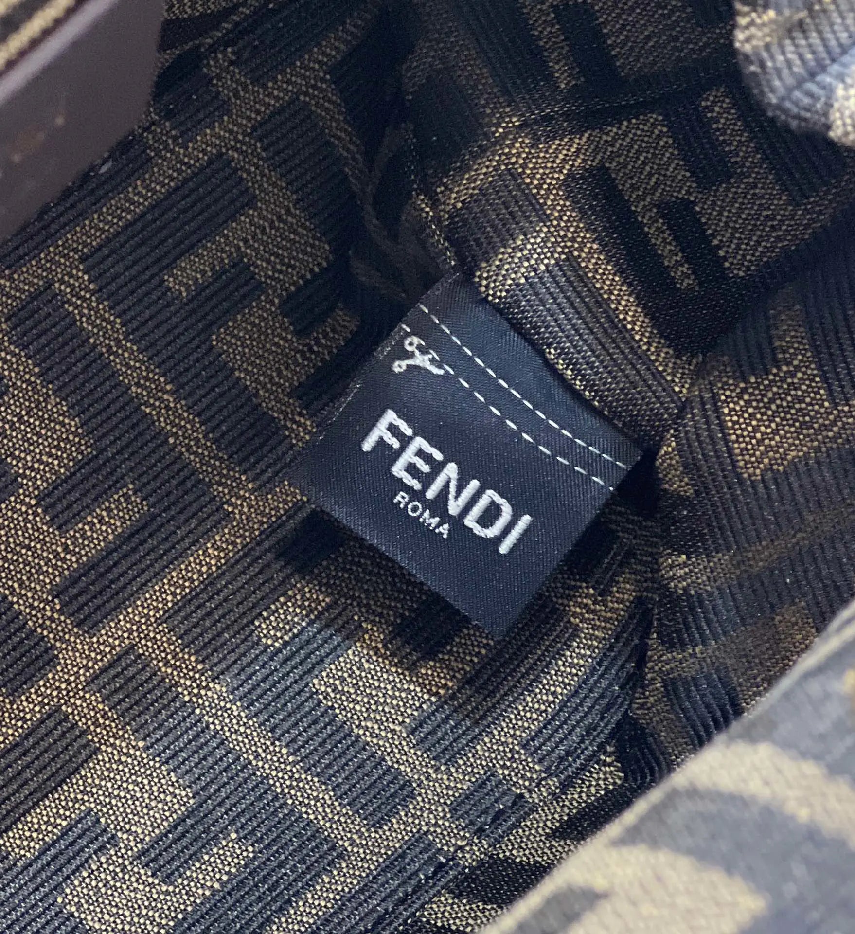 特徴です。アイコニックなFFモチーフのファブリックでライニングされた内側のコンパートメント、引き出し式のアタッチメントポイント、ゴールド仕上げの金具が特徴です。