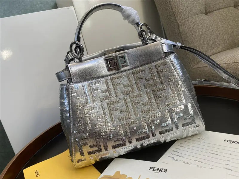 フェンディ ピーカブー ミニ シルバー ショルダーバッグ