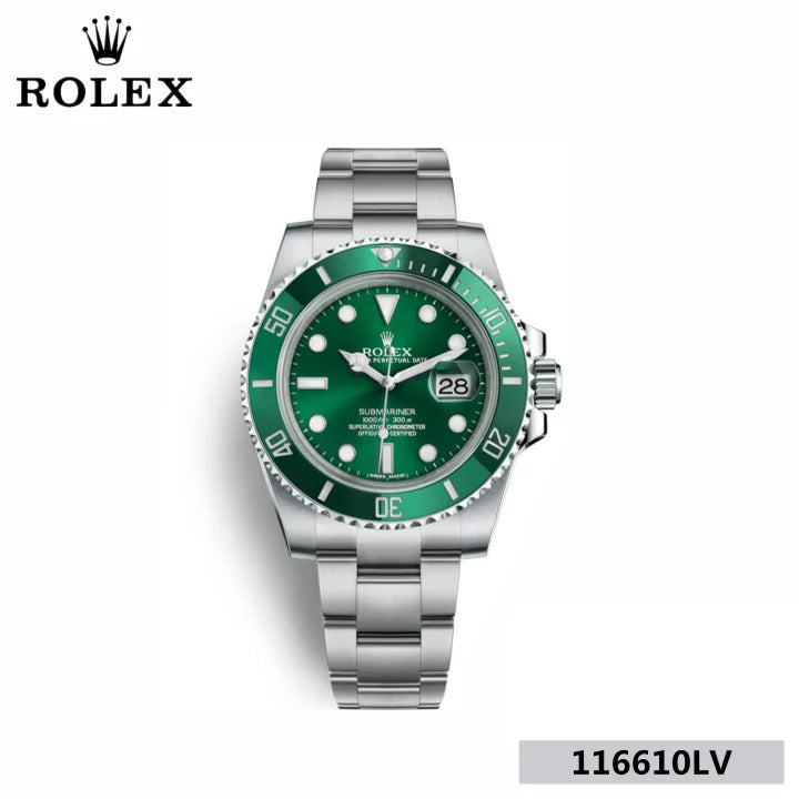 型番 116610LV 製品名 サブマリーナ シリアル ランダム ムーブメント 自動巻き 文字盤色 グリーン サイズ ケース径:約40mm 腕周り最大:約20cm 商品説明 ☆ロレックスのコーポレートカラーグリーンを使用したサブマリーナデイトです。紫外線の影響を受けなくいつまでも美しいグリーンセラクロム製ベゼル ウェットスーツの上からも装着できるように最大21mmの延長が可能なグライドロッククラスプなどの新機能も完備しております。