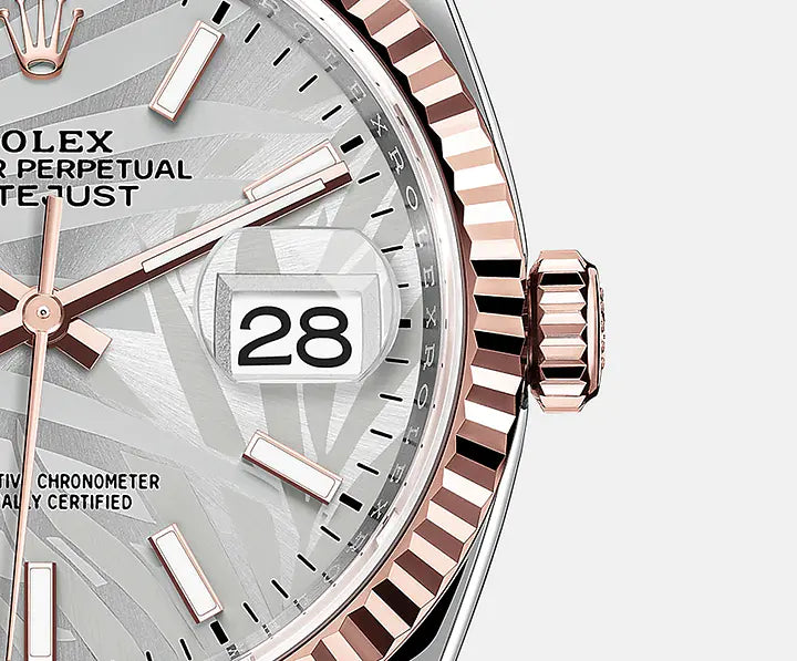 ロレックス フルーテッドベゼルは 卓越性の象徴。元来 オイスターベゼルの刻みにはベゼルをケースにねじ込み 時計の防水性能を確実にする機能的な目的があった。したがって その刻みはバックケースにも施されており 防水性能の維持という同じ理由で ロレックス独自のツールを用いてケースにねじ込まれていた。時を経て ベゼルの刻みはデザインの要素となり ロレックスのシンボルとなった。現在 フルーテッドベゼルは卓越性の象徴であり ゴールドのみで製造されている。