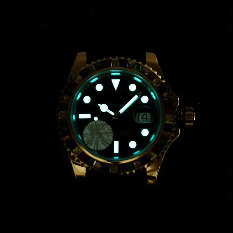 仕様:3針、デイト表示、回転ベゼル(32個のサファイア、8個のツァボライト、1個のダイヤモンド)、オイスターフレックス